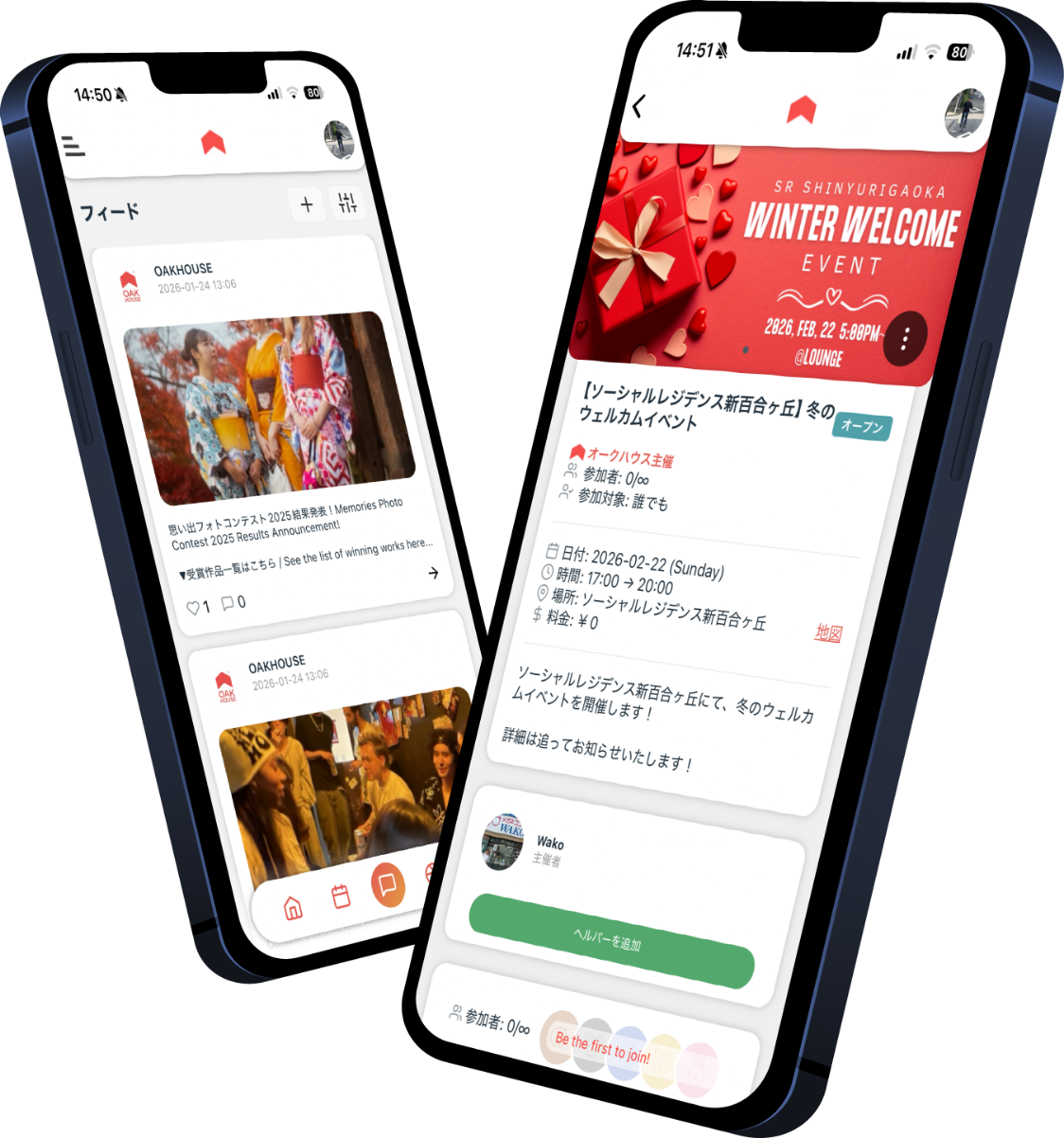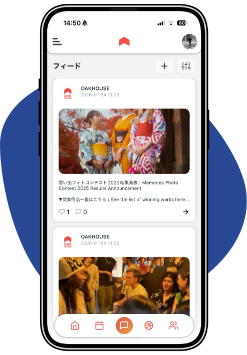 オークハウス公式アプリを通して興味や気の合う「誰か」を見つけましょう!