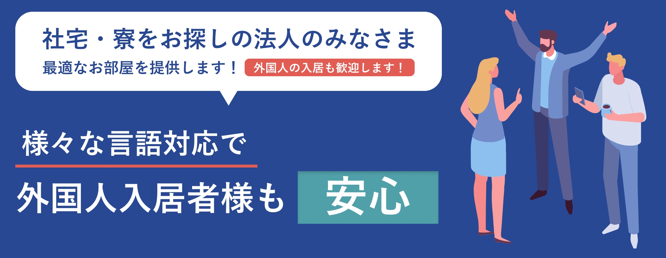人種、国籍、年齢、性別、仕事、収入は関係ありません。入居者への「信頼」で契約します。