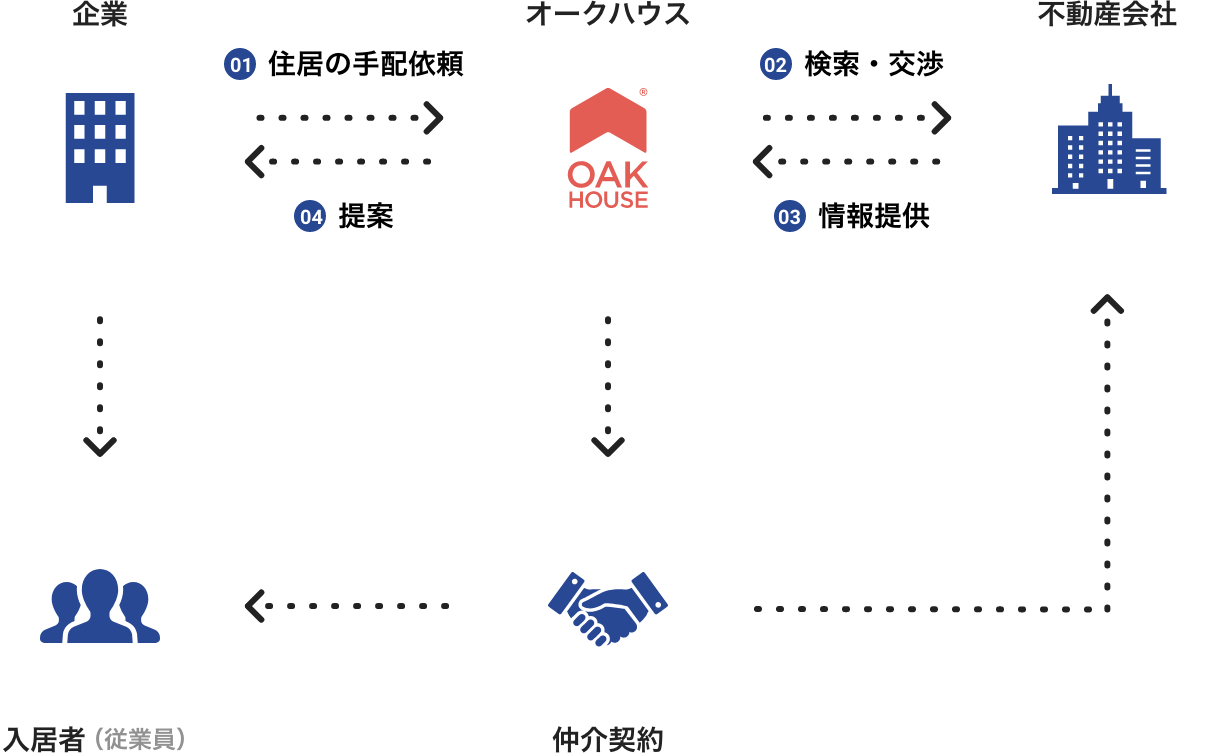 社宅から研修、短期・長期滞在まで多様なニーズに応じ、入居プロセスの合理化、コスト削減の交渉、電気・ガス・水道・インターネットなどの基本インフラの契約サポートは、従業員の福利厚生と定着率向上を実現します。