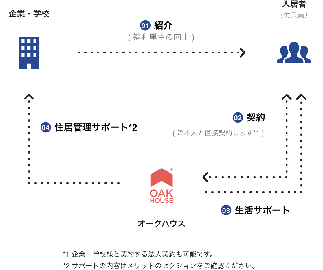 法人向け紹介サービスは、企業や教育機関の管理負担を最小限に抑えつつ、従業員及び学生の皆様の入居プロセスを簡素化し、コスト削減を実現します。最適なお部屋探しを継続的にサポートすることで、従業員や学生の福利厚生を向上させることができます。