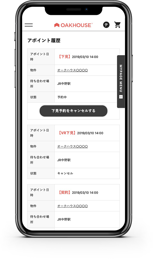 下見のアポイントの確認、キャンセルが出来て便利!