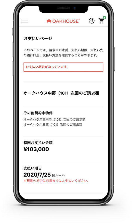 初期費用や家賃のお支払いもマイページからお手続き可能です!